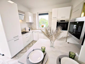 Beépített, egyedi tervezésű konyhaszekrény modern, minőségi gépekkel